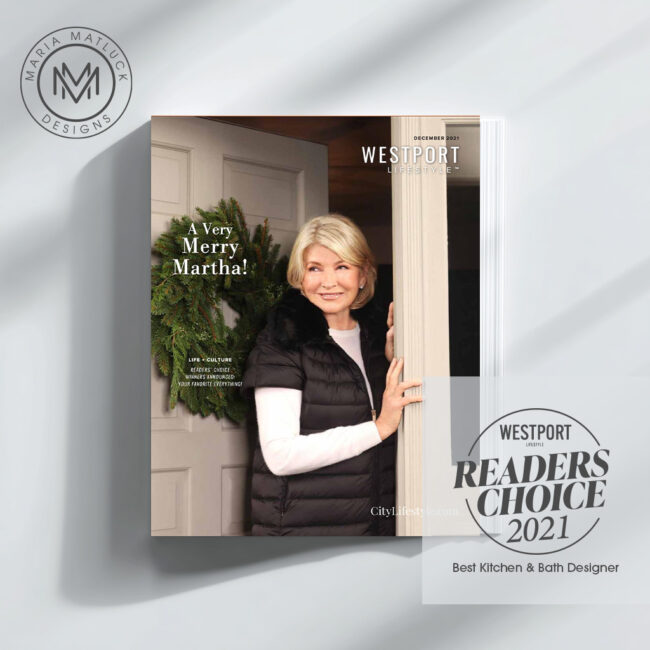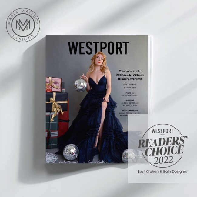 Maria Matluck Designs as been voted Westport Lifestyle Magazine’s “Best Kitchen & Bath Designer for 2025”. Featured in December issue of 2025, featured on page 60 – with in the best of the best of Westport. A whole hearted thank you to all those who voted for us! Read The Article